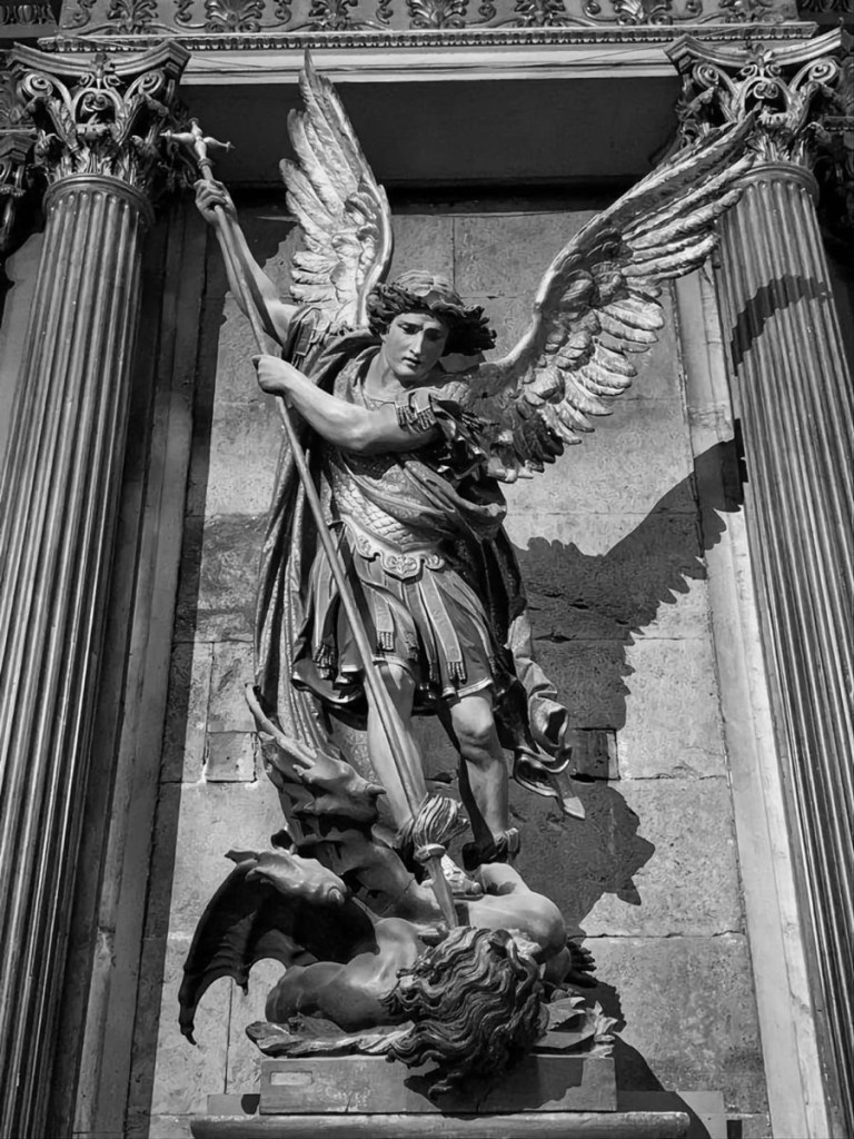 ミカエルはここで「謙遜でありながら強力な守護天使」「神の権威を体現する存在」として描かれます。